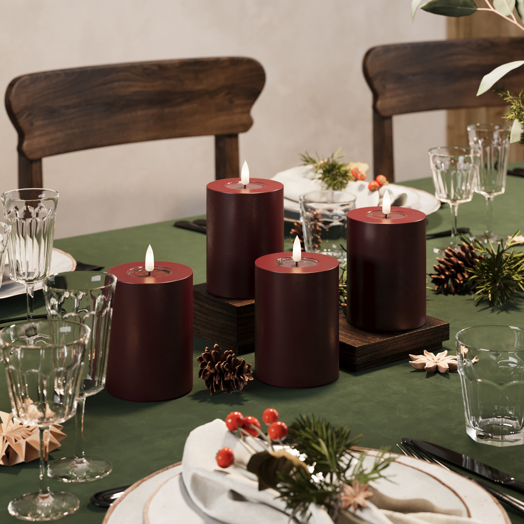 LED bloková světla Ø 7,5 x 10 cm Burgundská - 4 ks