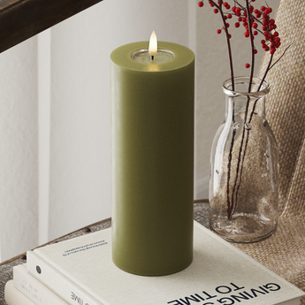 LED Bloklys Ø 7,5 x 20 cm Olivengrøn