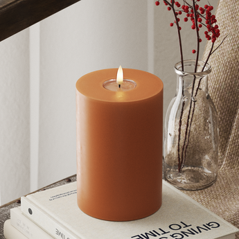Dette elegante LED bloklys i Orange tilbyder en virkelighedstro 'Real Flame'-effekt, der er så naturtro som et ægte stearinlys. Med en højde på 15 cm og en diameter på 10 cm er hvert LED bloklys omhyggeligt fremstillet i stearin & resin, udstyret med en livagtig 3D-flamme og en unik belægning af resin i toppen. Denne særlige kombination skaber ikke kun en autentisk følelse, men giver også det karakteristiske 'wet look', der efterligner smeltet stearin perfekt.