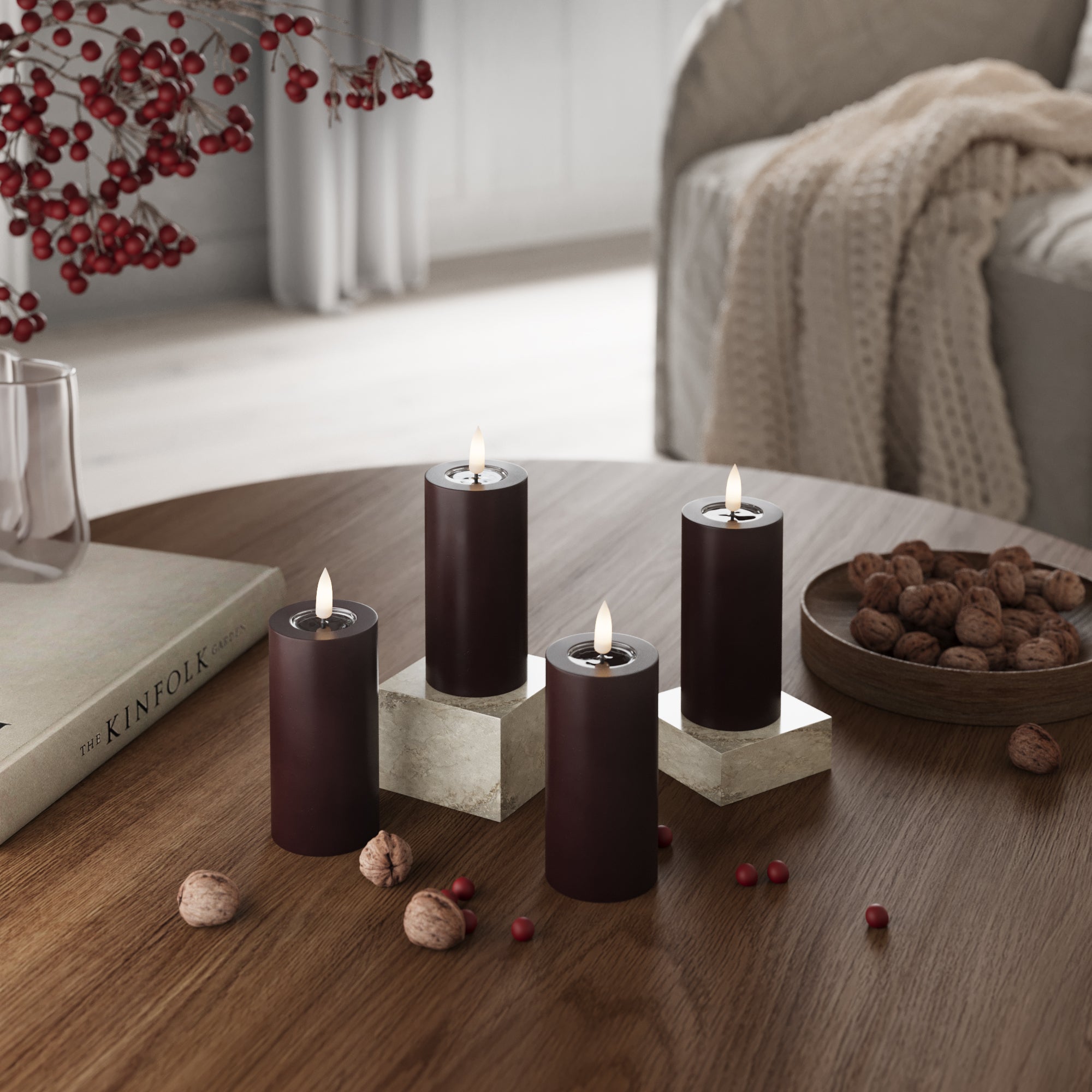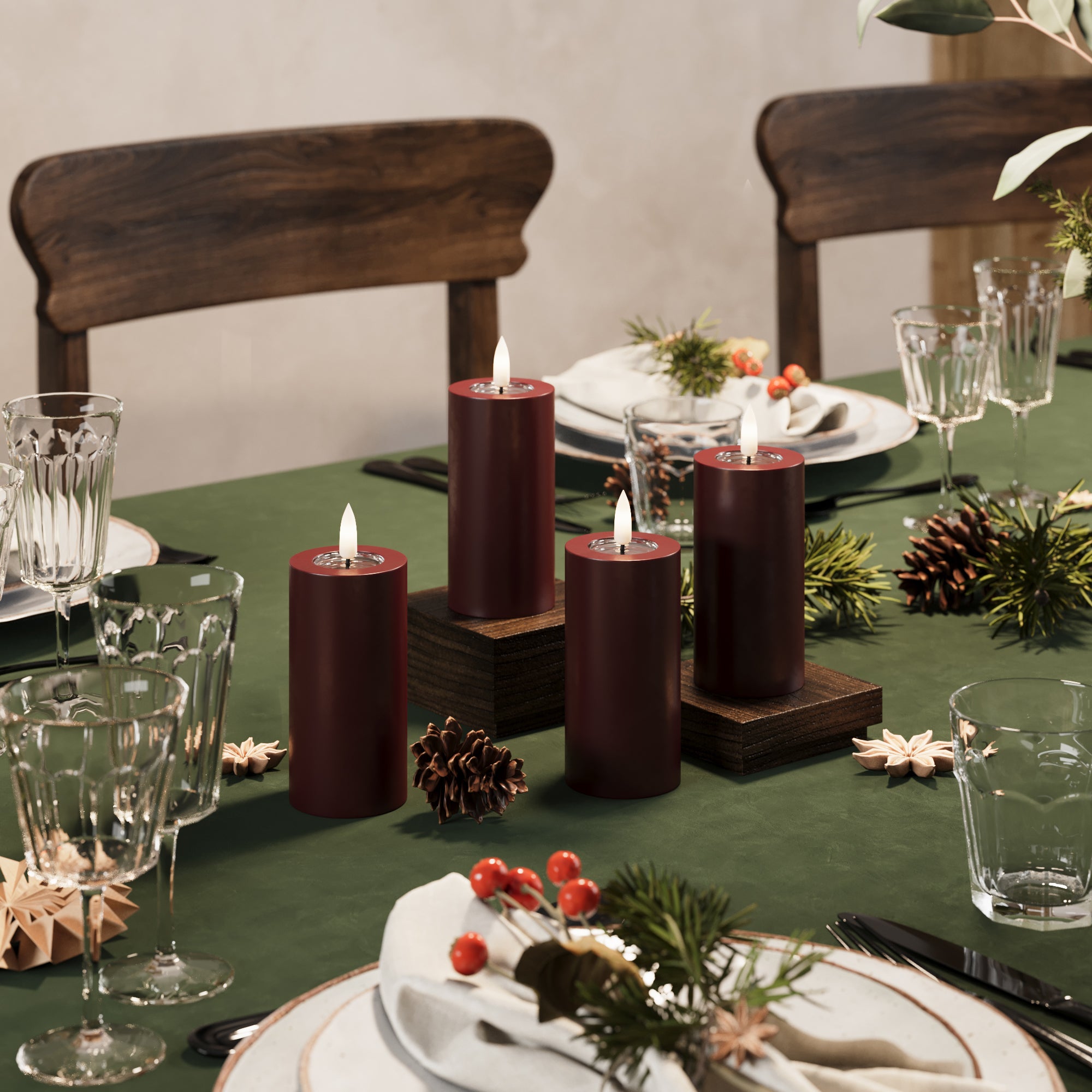 LED-Blockkerzen Ø 5 x 10 cm Burgunderrot – 4 Stück