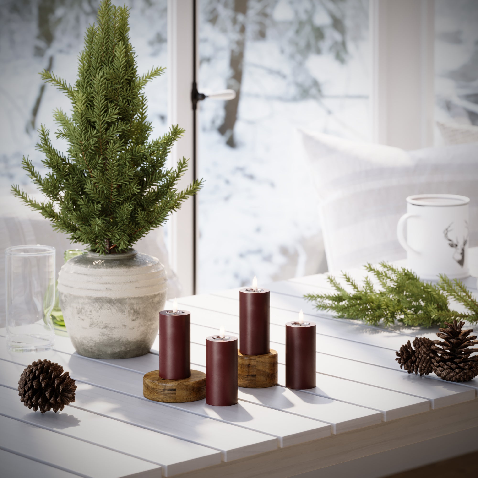 Produktet kan findes i: Alle, Ausverkauf, Clerk API, Deluxe Homeart Black Week, LED Blockkerzen Ø 5 x 10 cm - 4 Stk, LED-Blockkerzen Ø 5 x 10 cm, Winter