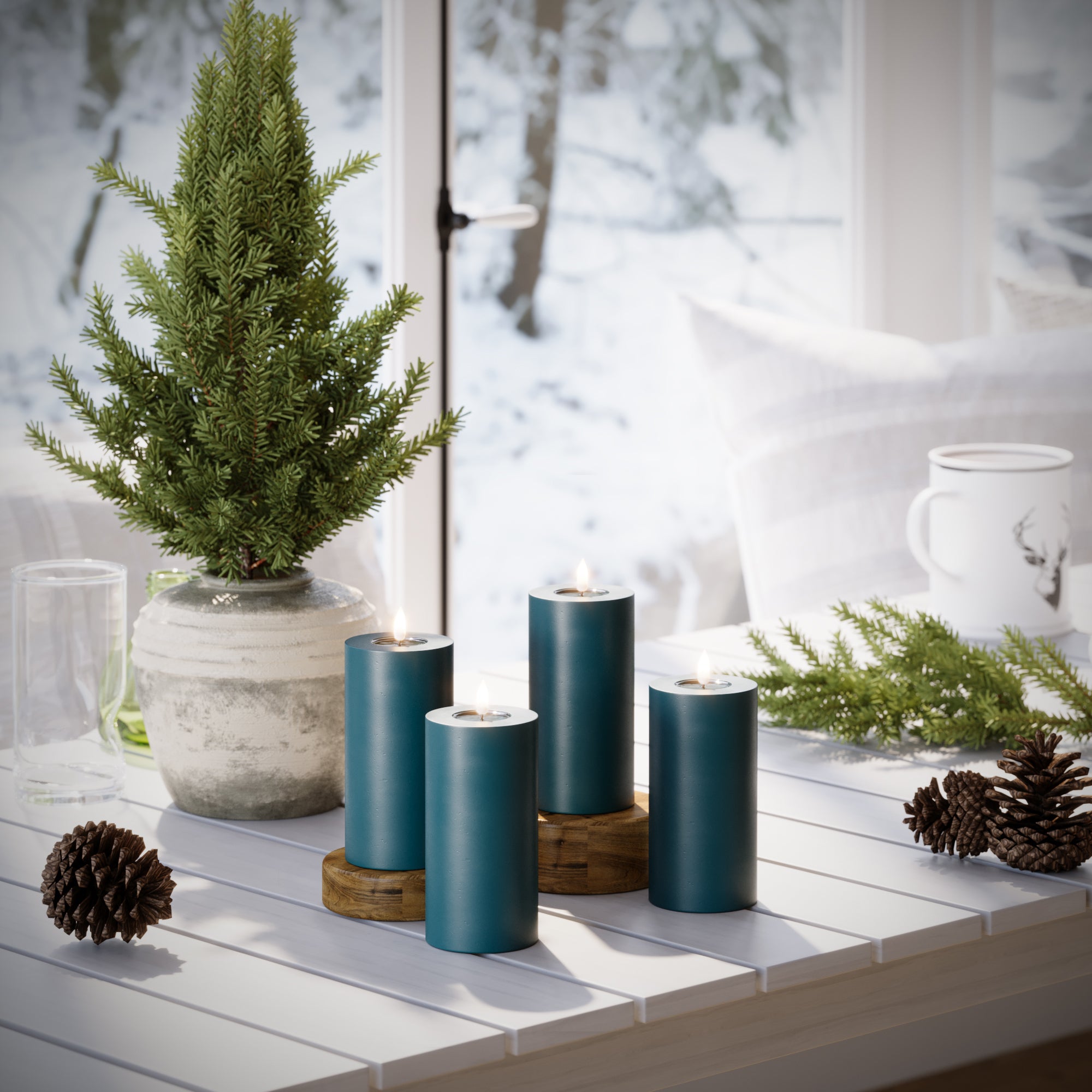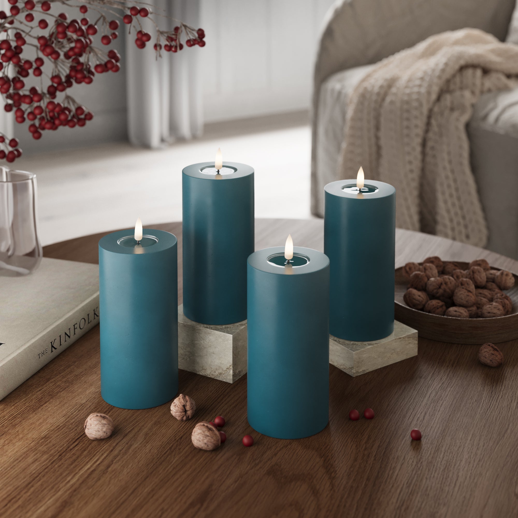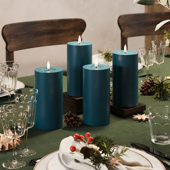 LED-Blockkerzen Ø 7,5 x 15 cm Petrol – 4 Stück
