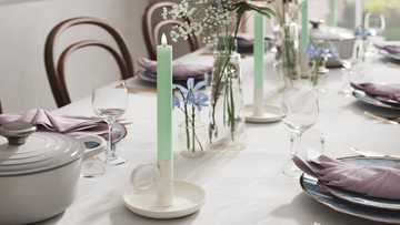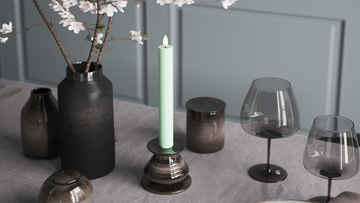 Kronelys giver højde i borddækningen. Stil flere på række for et gennemført udtryk med ro og rytme.