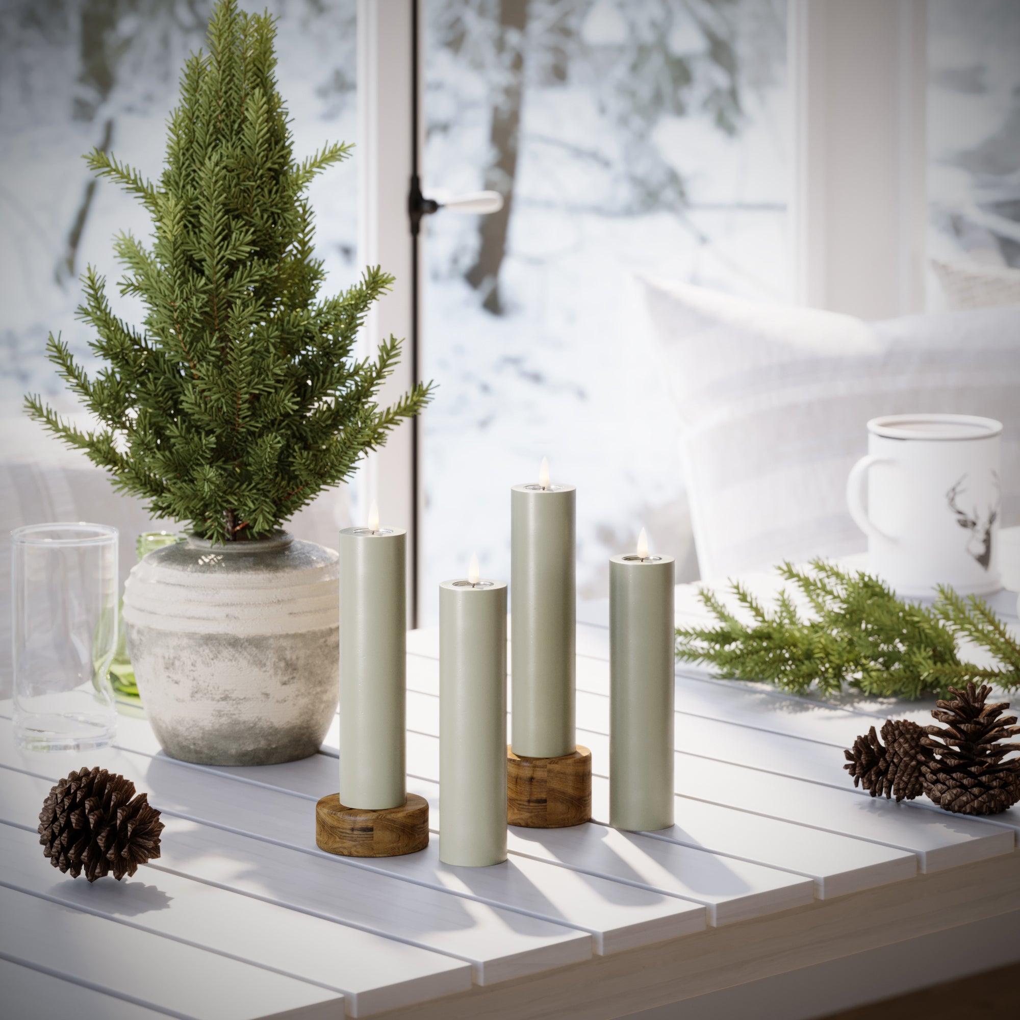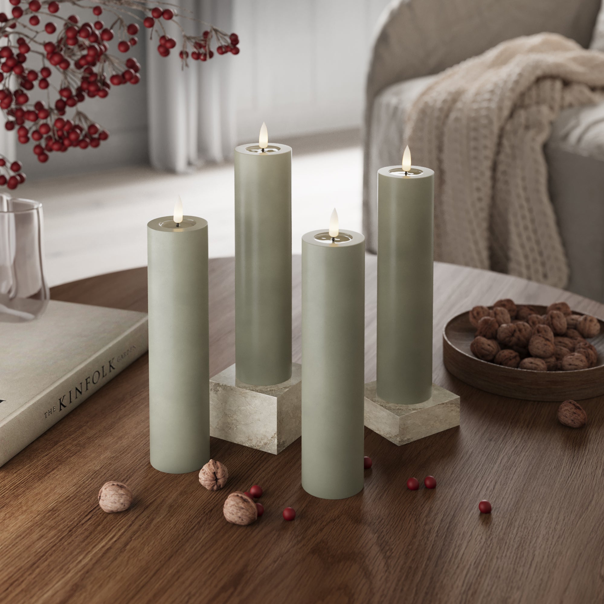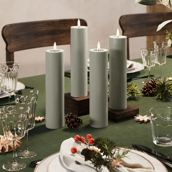 LED Bougie pilier Ø 5 x 20 cm Vert sauge - 4 PCS