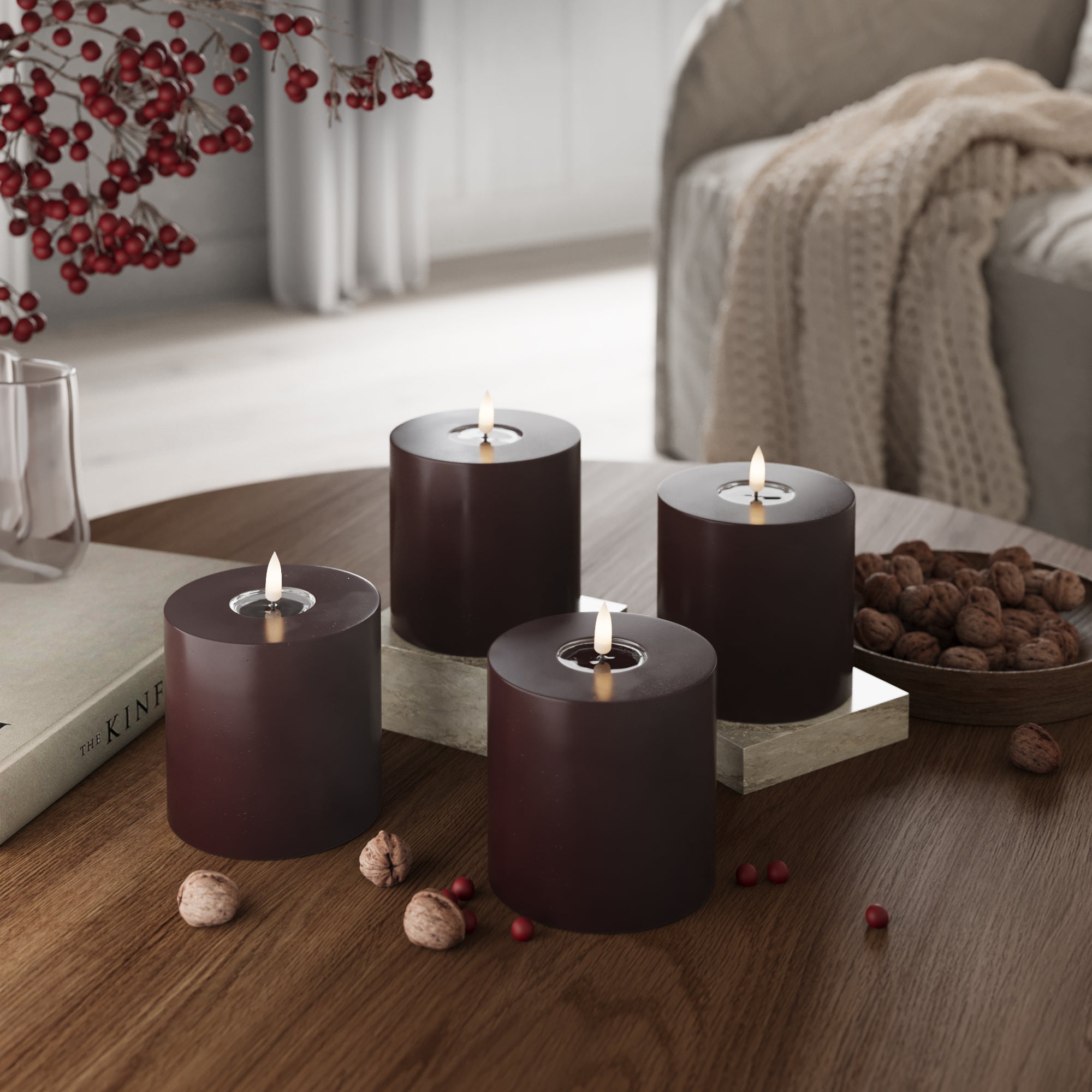 LED Stompkaarsen Ø 10 x 10 cm Bourgogne - 4 pc's