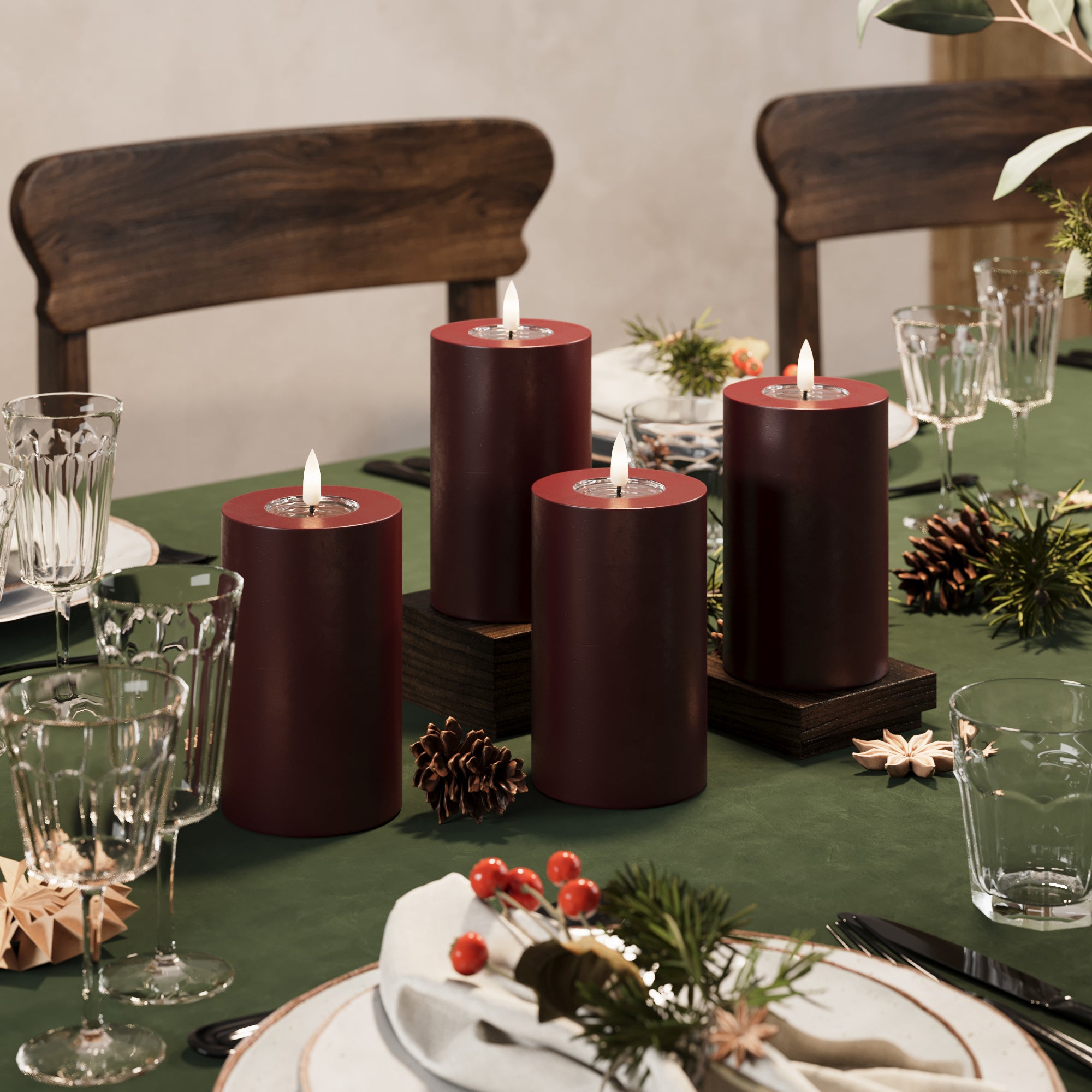 LED Stompkaarsen Ø 7,5 x 12,5 cm Bourgogne - 4 pc's