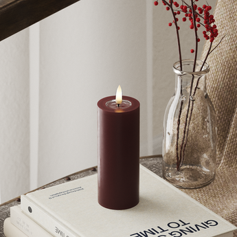 Esta articulação elegante Vela pilar em Borgonha Oferece um efeito de 'chama real' da vida real que é tão realista quanto uma vela real. Com uma altura de 12,5 cm e um diâmetro de 5 cm é uma junta Vela pilar Cuidadosamente feito de velas e resina, equipado com uma chama 3D realista e um revestimento exclusivo de resina no topo. Essa combinação específica não apenas cria um sentimento autêntico, mas também dá ao distinto 'olhar molhado' que imitando as velas derretidas perfeitamente.
